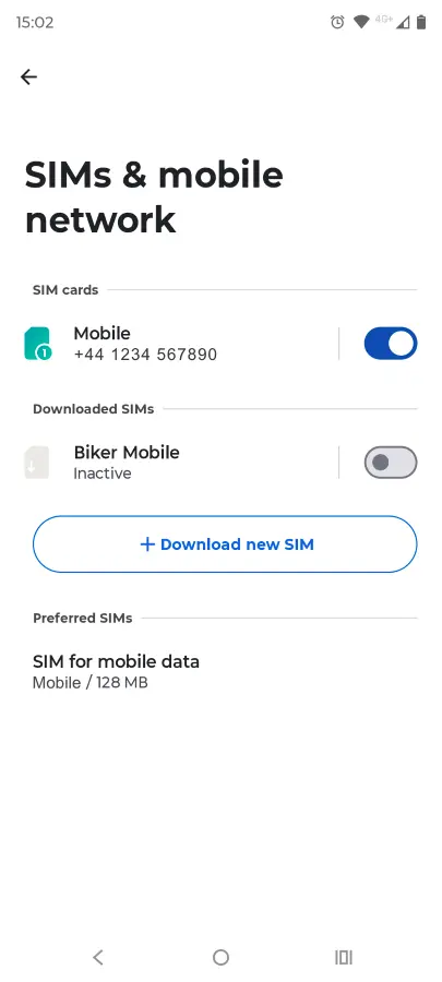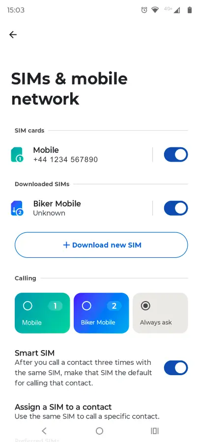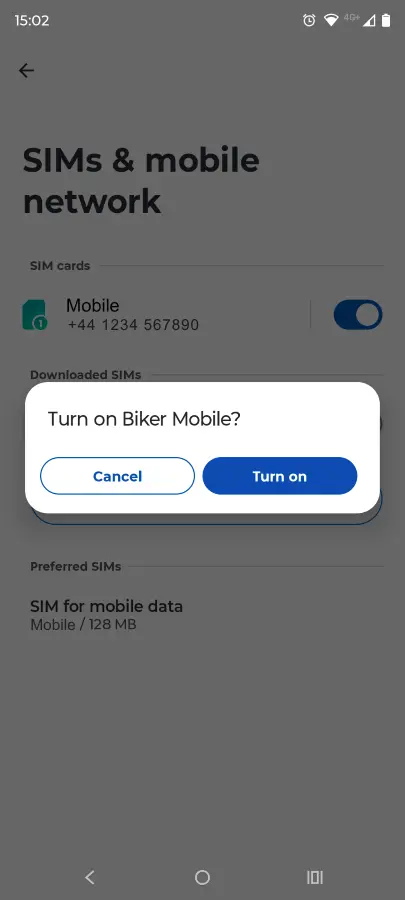 Once you have selected to use the SIM, it will become active. You can then also select preferences for Calls, SMS and Data if you have another SIM